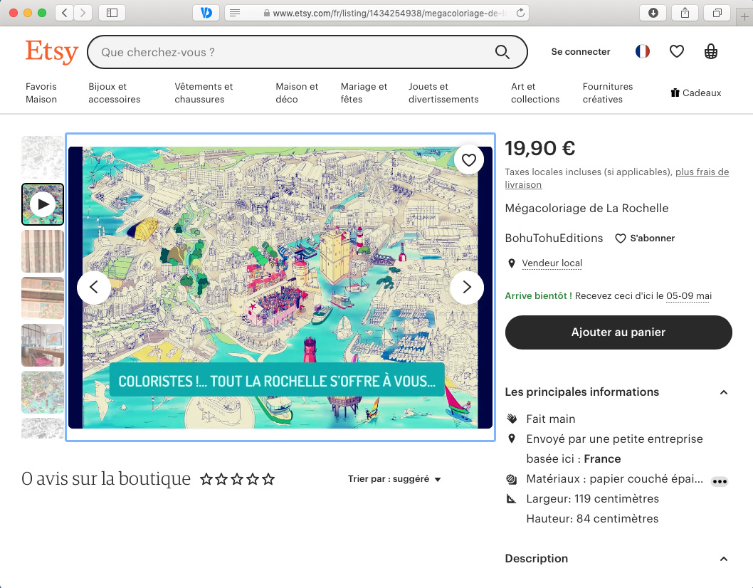 Pour faciliter les commandes de Méga et Maxicoloriages de La Rochelle à l'extérieur de l'Union Européenne, nous avons ouvert une nouvelle boutique Bohu Tohu Editions sur le célèbre site de vente et de création Etsy.com⦠C'est ici !