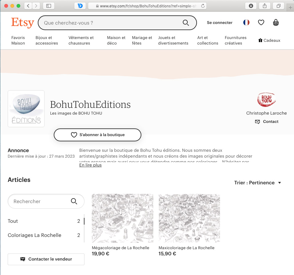 Pour faciliter les commandes de Méga et Maxicoloriages de La Rochelle à l'extérieur de l'Union Européenne, nous avons ouvert une nouvelle boutique Bohu Tohu Editions sur le célèbre site de vente et de création Etsy.com⦠C'est ici !